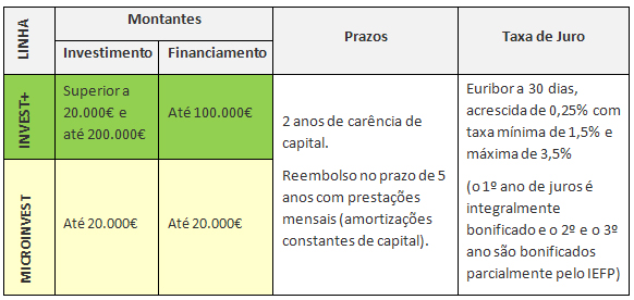 investimento total e 50.000€ por posto de trabalho criado a tempo completo.